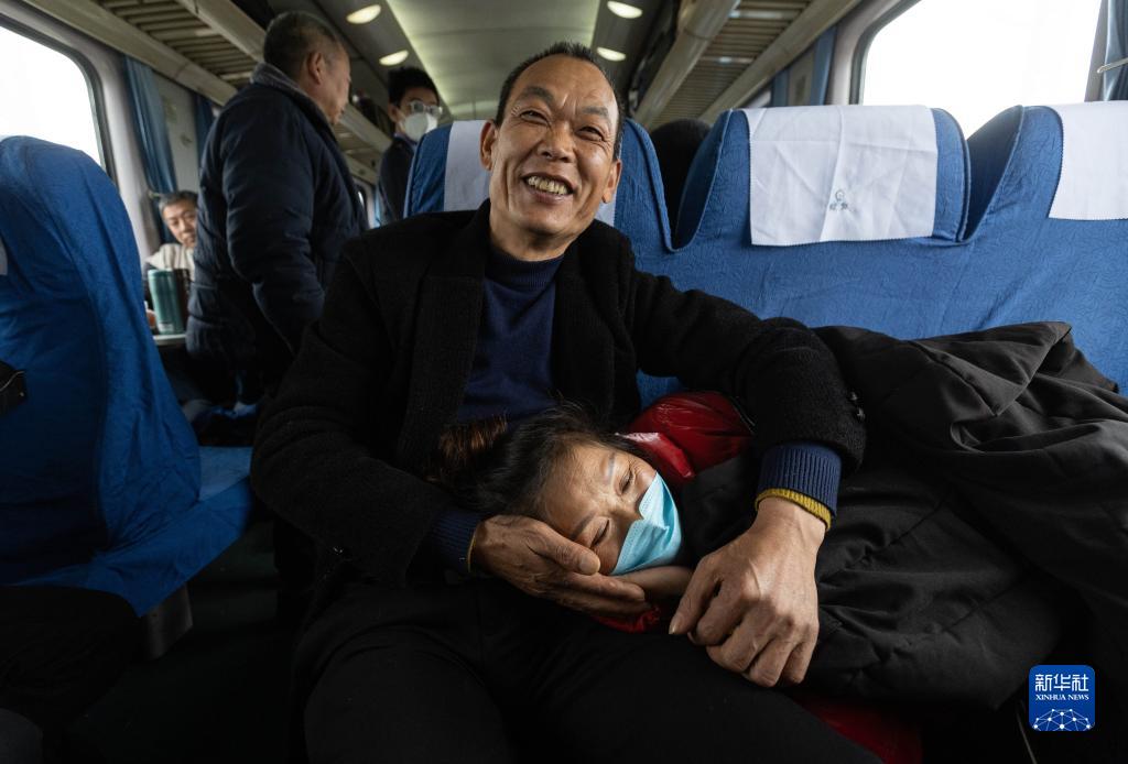 2月14日,來(lái)自四川省眉山市彭山區的舒紀林夫婦在臨客K4618次列車(chē)上。