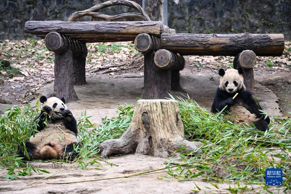 2月15日,在中國大熊貓保護研究中心都江堰基地,大熊貓在吃竹子。