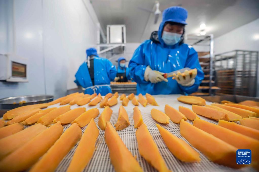 2月15日,工人在河北省遷西縣太平寨鎮一家紅薯加工企業(yè)車(chē)間加工手切薯干。