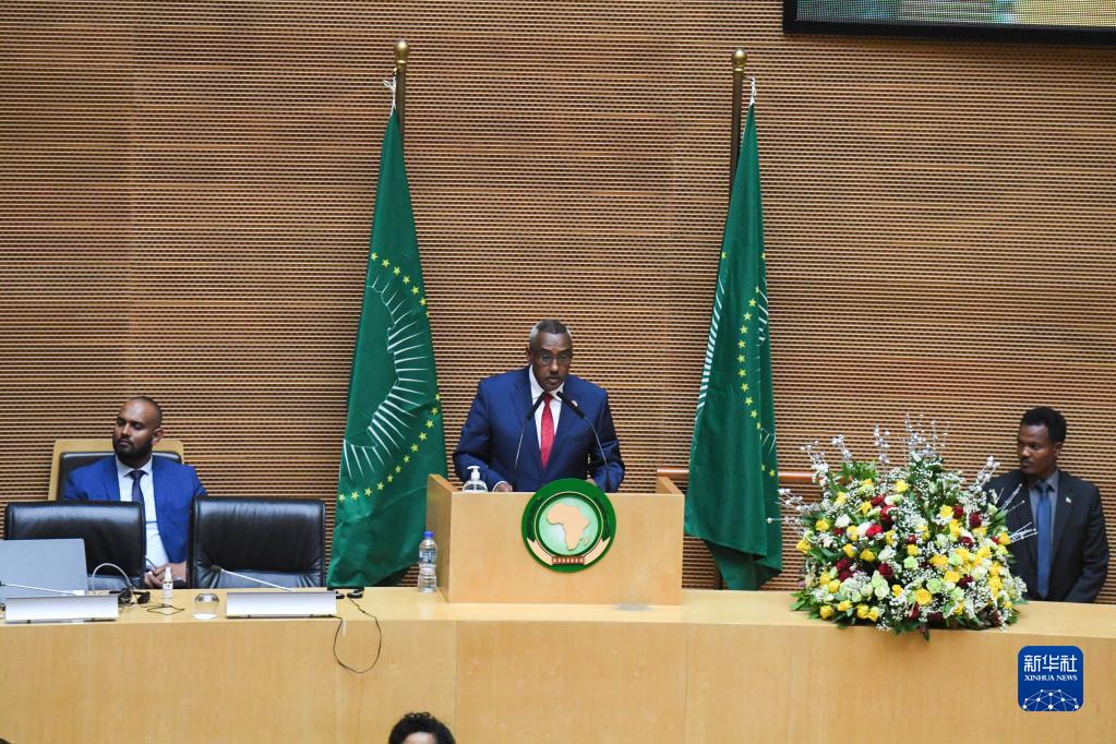 2月15日,在埃塞俄比亞亞的斯亞貝巴,埃塞俄比亞副總理兼外長(cháng)德梅克(中)在非洲聯(lián)盟(非盟)執行理事會(huì )第42屆常務(wù)會(huì )議開(kāi)幕式上發(fā)表講話(huà)。