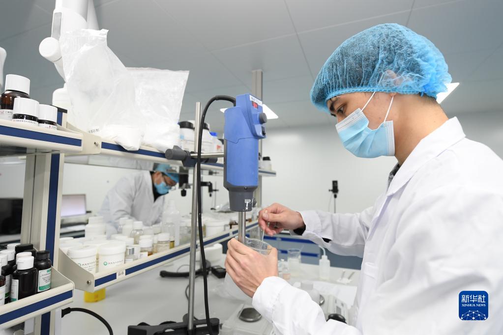 2月16日,在美妝小鎮一家小微化妝品企業(yè),工作人員在實(shí)驗室進(jìn)行新產(chǎn)品的檢測研發(fā)。