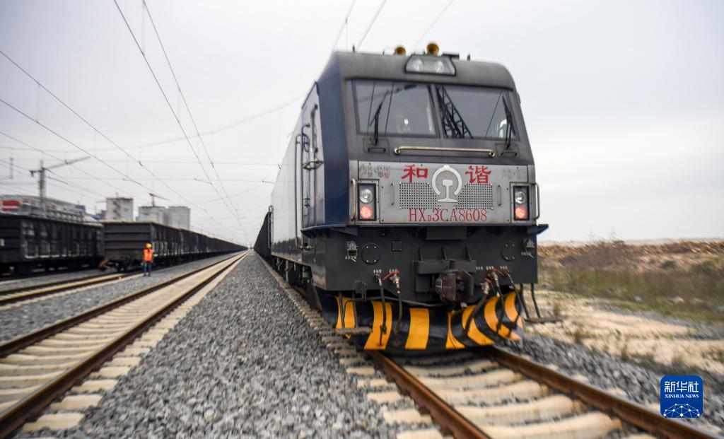 一列“路企直通”車(chē)駛入北海鐵山港營(yíng)運貨物(2月14日攝)。