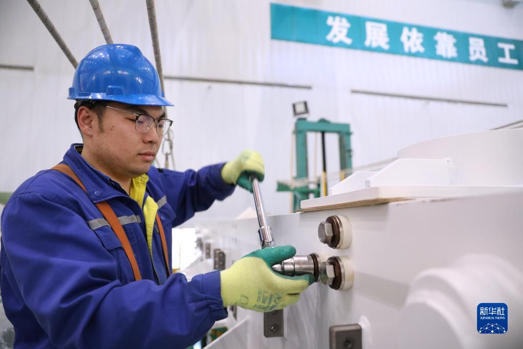 2月16日,工人在車(chē)間內進(jìn)行設備器身整理。