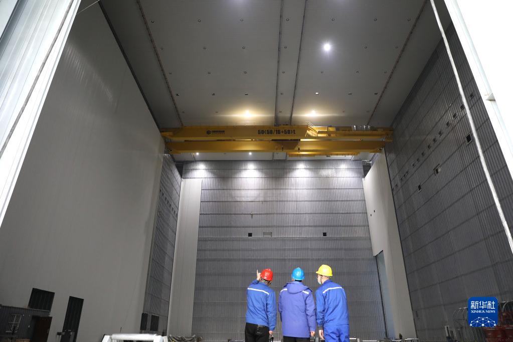 這是即將完工的特高壓套管研制基地內的試驗大廳(2月16日攝)。