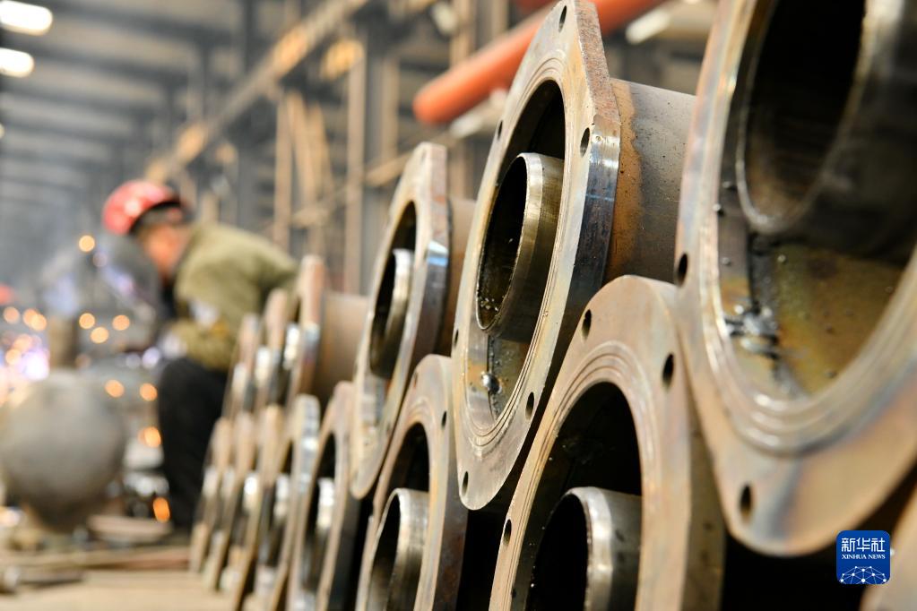 2月16日,在位于獻縣的河北環(huán)科除塵設備有限公司生產(chǎn)車(chē)間,工人在進(jìn)行焊接作業(yè)。