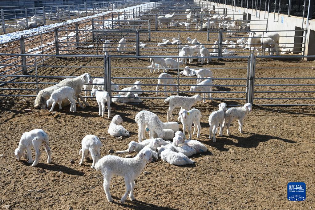 這是2月15日在位于古浪縣的甘肅羊如祥農業(yè)有限公司良種肉羊繁育場(chǎng)拍攝的出生不久的羊羔。