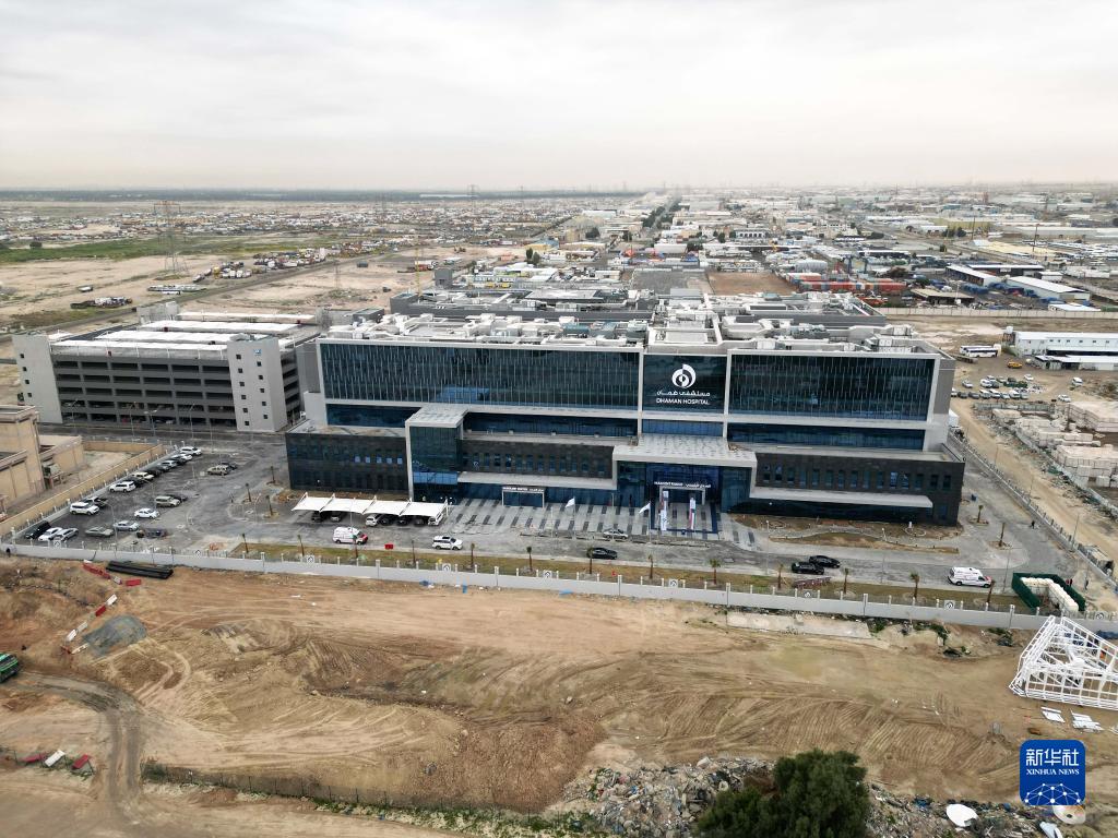 這是2月15日在科威特杰赫拉省拍攝的科威特醫保醫院項目杰赫拉省分院外景(無(wú)人機照片)。