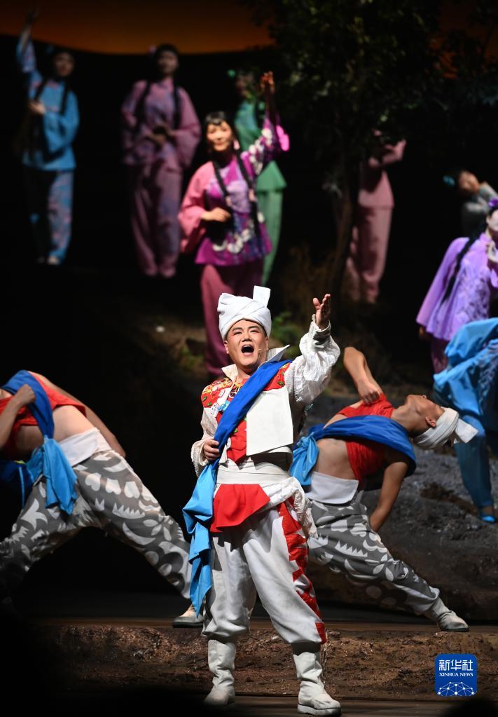 2月16日在首屆中國非物質(zhì)文化遺產(chǎn)保護年會(huì )展演活動(dòng)上拍攝的陜北秧歌劇《米脂婆姨綏德漢》演出現場(chǎng)。