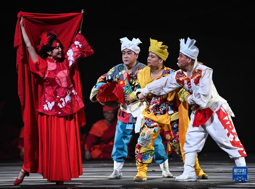2月16日在首屆中國非物質(zhì)文化遺產(chǎn)保護年會(huì )展演活動(dòng)上拍攝的陜北秧歌劇《米脂婆姨綏德漢》演出現場(chǎng)。