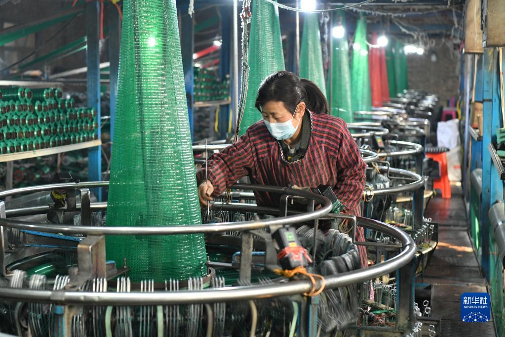 2月16日,地處獻縣泛區的河北省滄州市獻縣小平王鄉元昌樓村村民在村內一家編織袋加工廠(chǎng)內工作。