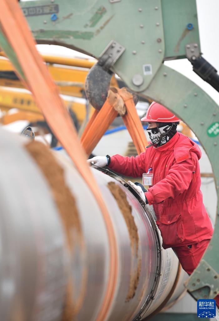 2月16日,施工人員在位于陜西省咸陽(yáng)市禮泉縣的西氣東輸三線(xiàn)工程陜西段管道鋪設施工現場(chǎng)作業(yè)。