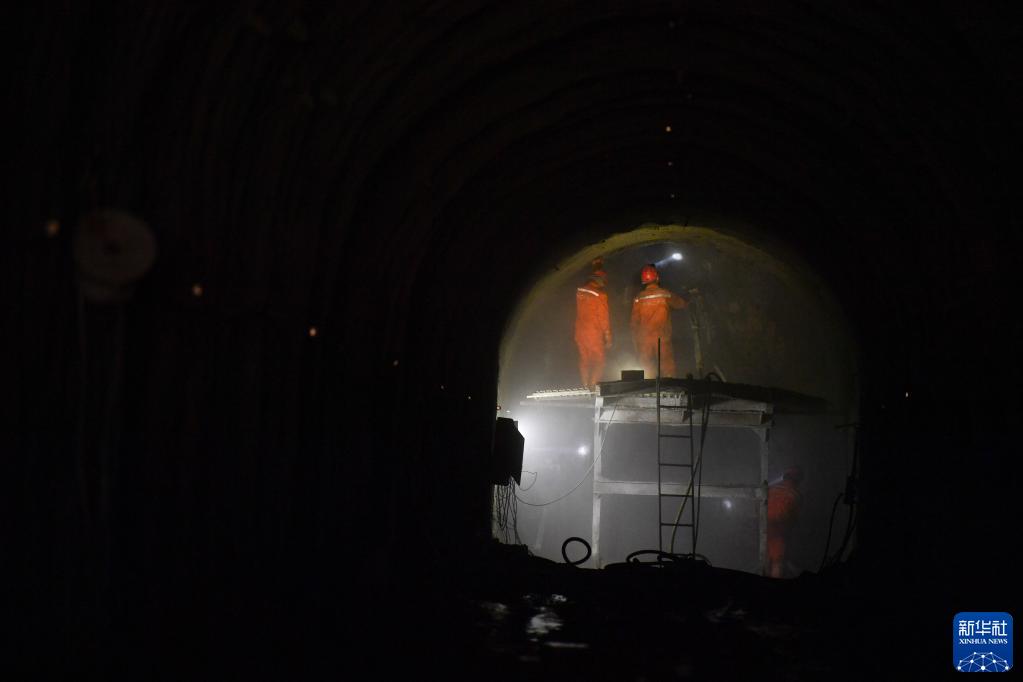 2月7日,施工人員在位于陜西省商洛市商州區的西氣東輸三線(xiàn)工程陜西段劉村隧道作業(yè)。