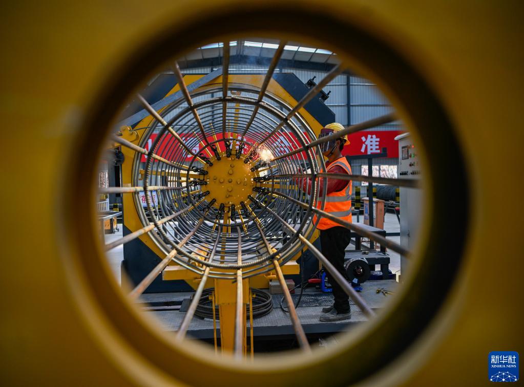 2月17日,在位于達州市境內的中鐵四局西渝高鐵鋼筋加工廠(chǎng),工人在焊接鋼筋籠。