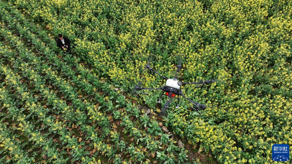 早春時(shí)節,貴州省六盤(pán)水市六枝特區木崗鎮16000余畝油菜花競相綻放。當地村民積極整地、育苗,并利用植保無(wú)人機進(jìn)行春管,一派繁忙景象。