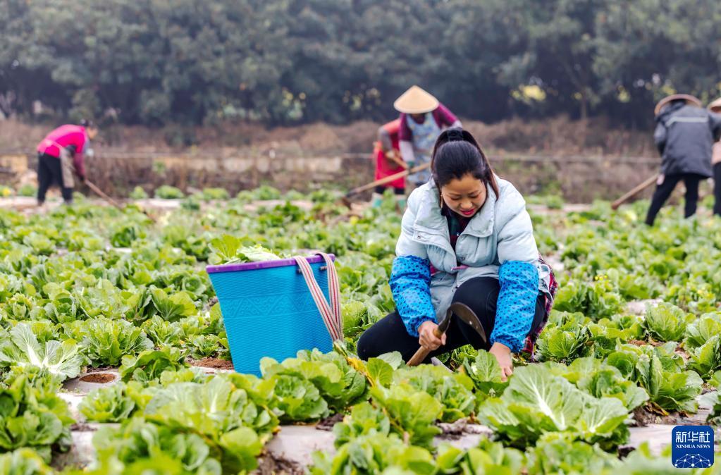 2月17日,農戶(hù)在貴州省六盤(pán)水市六枝特區木崗鎮木崗沖村采收白菜。