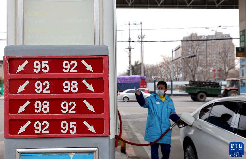 2月17日,山東省棗莊市永安鎮一加油站工作人員給汽車(chē)加油。