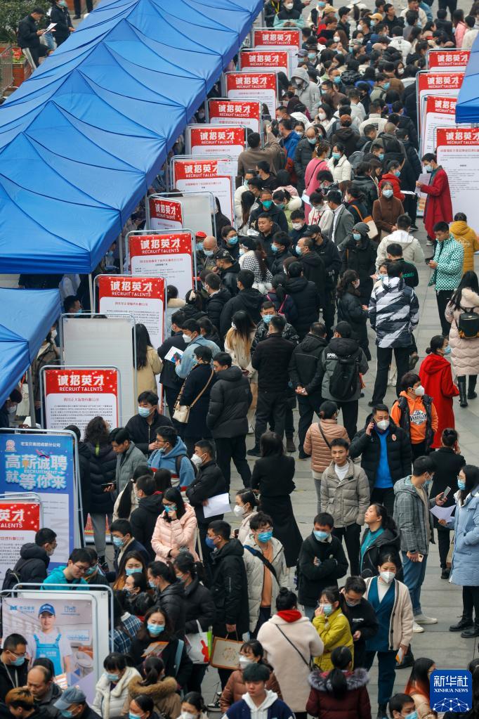 2月17日,人們在中國成都人力資源服務(wù)產(chǎn)業(yè)園查看招聘信息,尋找工作機會(huì )。