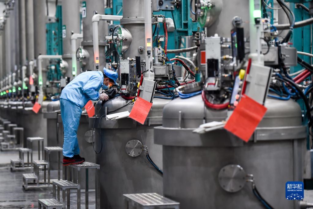 2月17日,在烏海市京運通新材料科技有限公司,工人在生產(chǎn)車(chē)間作業(yè)。