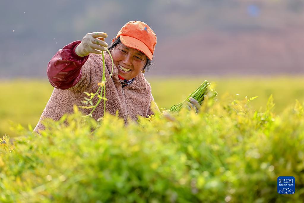 2月17日,浙江省杭州市淳安縣千島湖鎮坪山生態(tài)浮島上,工作人員忙著(zhù)采摘水生蔬菜。