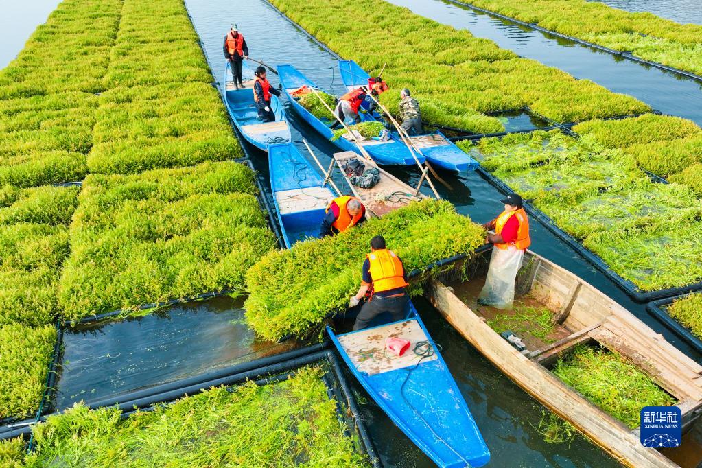 近年來(lái),浙江省杭州市淳安縣在千島湖典型庫灣、入湖口等區域,積極運用生態(tài)浮島水上植物無(wú)土栽培技術(shù)種植空心菜、水芹菜等水生蔬菜,直接吸收庫區水體中氮磷等元素,從而能夠有效地降低水體中營(yíng)養物質(zhì)的含量,提升水質(zhì)。近日,水生蔬菜進(jìn)入采收季節,“湖上菜園”呈現春收繁忙景象。