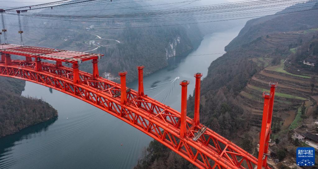 正在進(jìn)行橋面系施工的德余高速烏江特大橋(2月17日攝,無(wú)人機照片)。