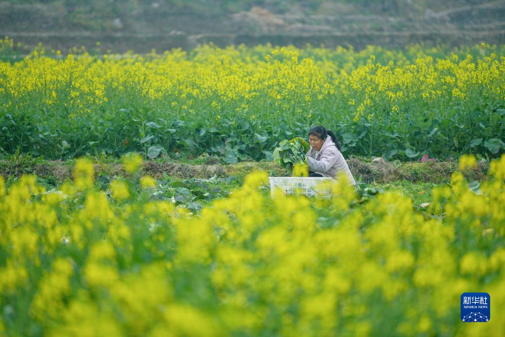 2月18日,在貴州省遵義市余慶縣白泥鎮滿(mǎn)溪村,農民在采收蔬菜。