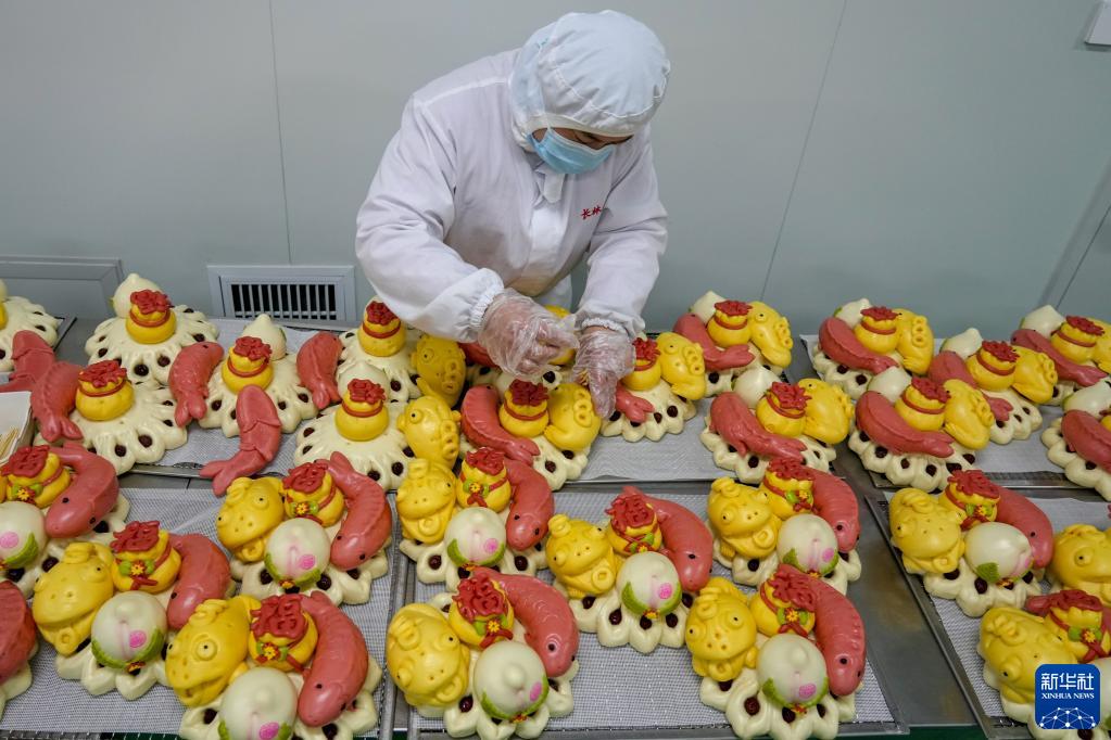 2月17日,威海長(cháng)林生態(tài)農業(yè)有限公司員工在十萬(wàn)級凈化生產(chǎn)車(chē)間內制作花餑餑。