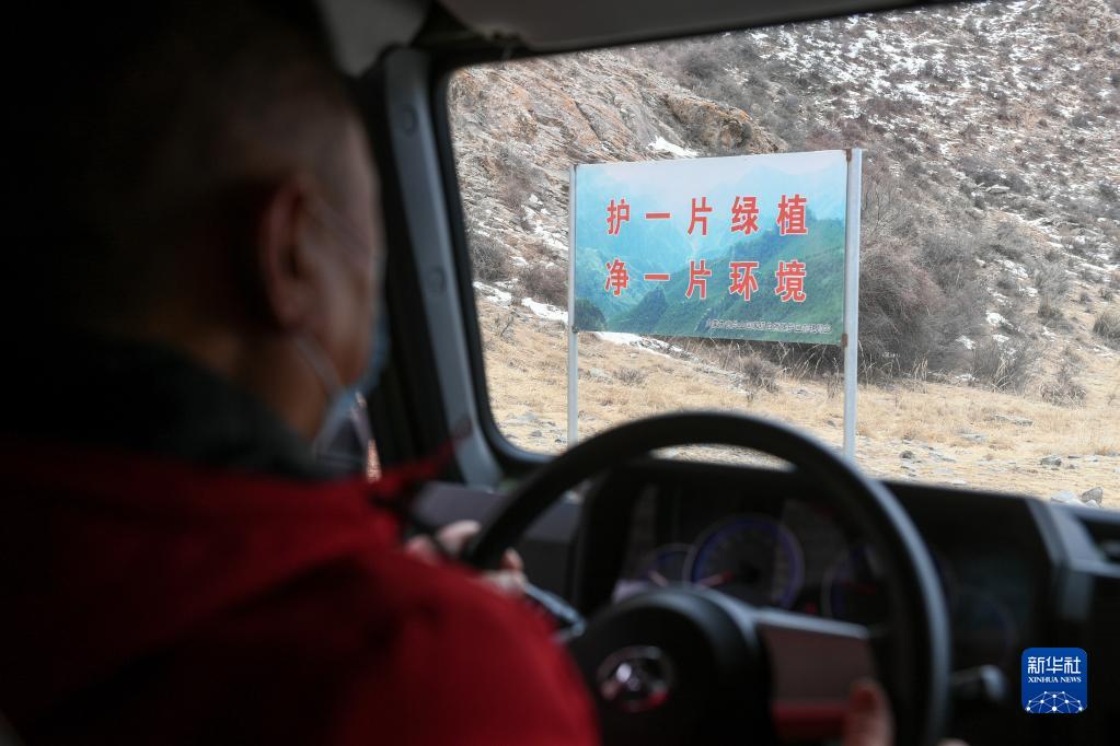 2月17日,哈拉烏管理站的管護員駕車(chē)在保護區內巡護。
