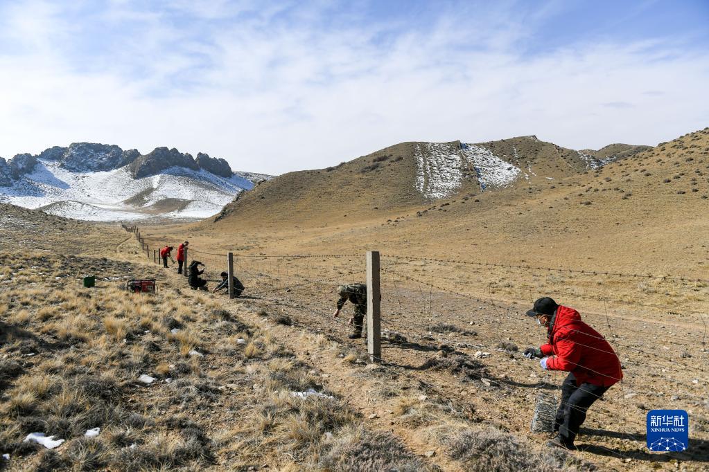 2月17日,哈拉烏管理站門(mén)洞子管護站的管護員在修理防護欄。