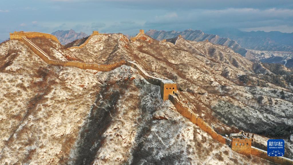 這是2月18日拍攝的位于河北省承德市灤平縣的金山嶺長(cháng)城雪景(無(wú)人機照片)。