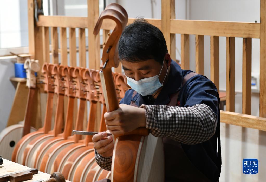2月18日,河北省肅寧縣一家民族樂(lè )器生產(chǎn)企業(yè)的工人在生產(chǎn)車(chē)間內制作樂(lè )器。