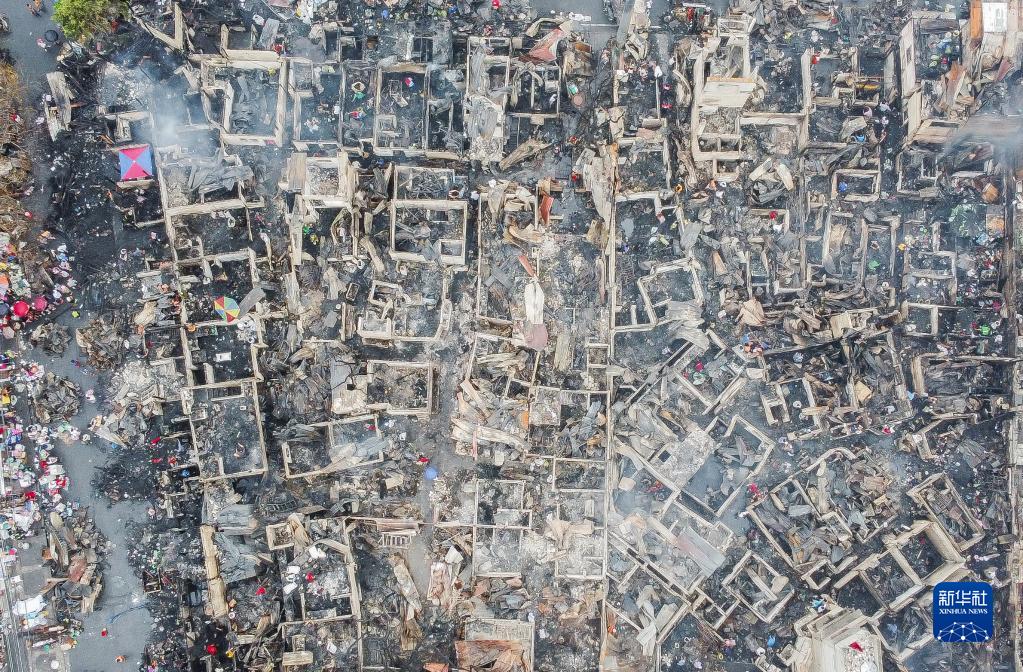 這是2月19日在菲律賓奎松拍攝的被燒毀的房屋(無(wú)人機照片)。