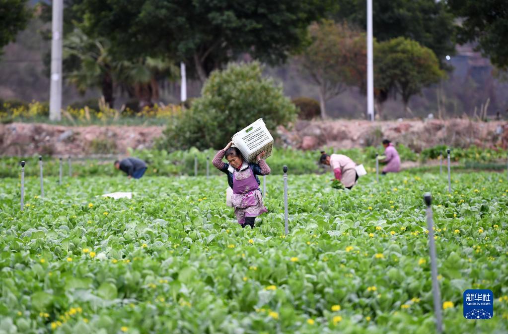2月19日,農民在貴州省榕江縣車(chē)江壩區蔬菜基地采收蔬菜。