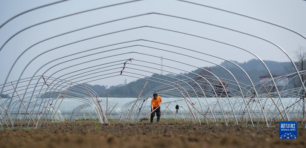 2月19日,農民在湖南省懷化市通道侗族自治縣萬(wàn)佛山鎮杏花村的西瓜種植基地疏松土壤。