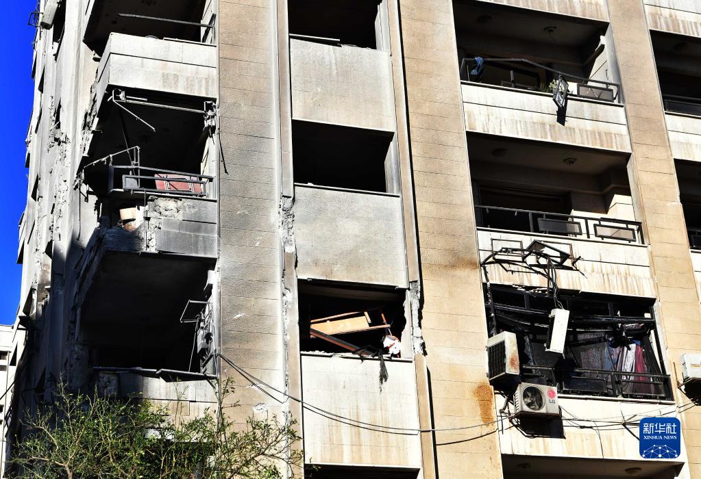 這是2月19日在敘利亞大馬士革拍攝的在導彈襲擊中受損的建筑。