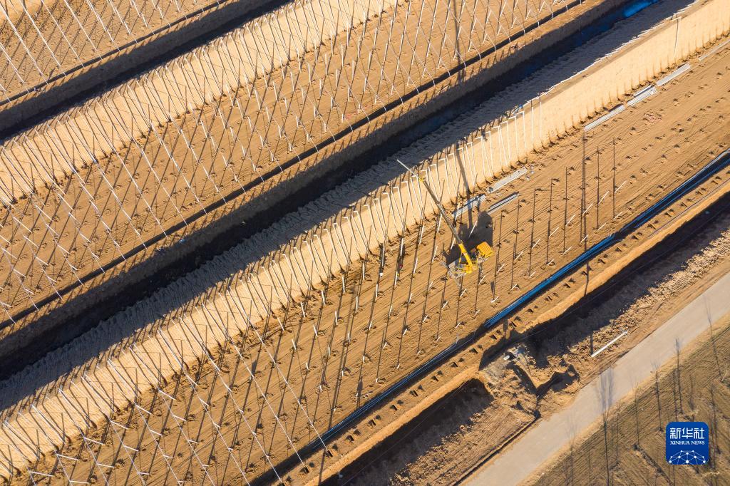 2月19日,山東省東營(yíng)市廣饒縣稻莊鎮高效生態(tài)農業(yè)示范園項目的設施蔬菜大棚正加緊建設(無(wú)人機照片)。