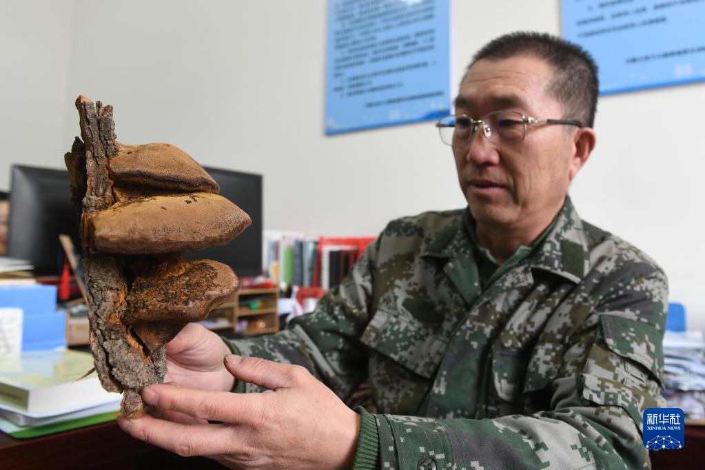 2月20日,在內蒙古賀蘭山國家級自然保護區管理局,工作人員徐建國展示植物標本。
