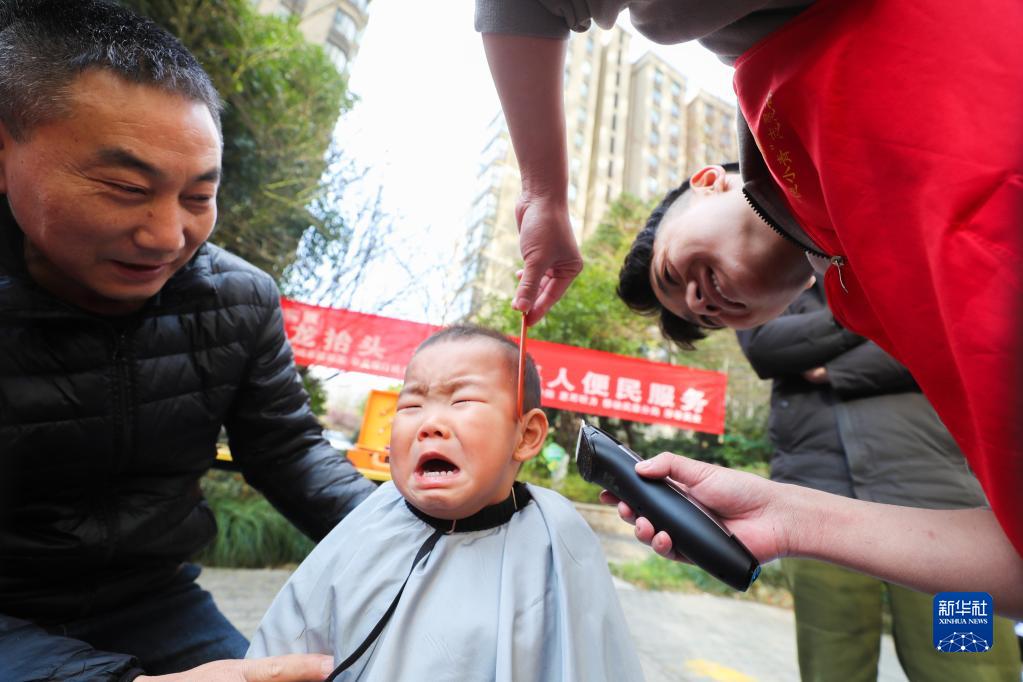 當日是農歷二月初二,許多家長(cháng)帶著(zhù)孩子“剃龍頭”,祈求孩子在新的一年健康成長(cháng)。