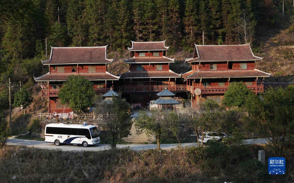 2月20日,巡回審判車(chē)行駛在柳州市融水苗族自治縣鄉村道路上。