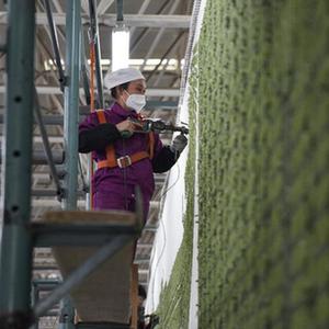 2月21日,在西寧市圣源地毯集團有限公司生產(chǎn)車(chē)間,操作工檢查毯面、拔花刺。