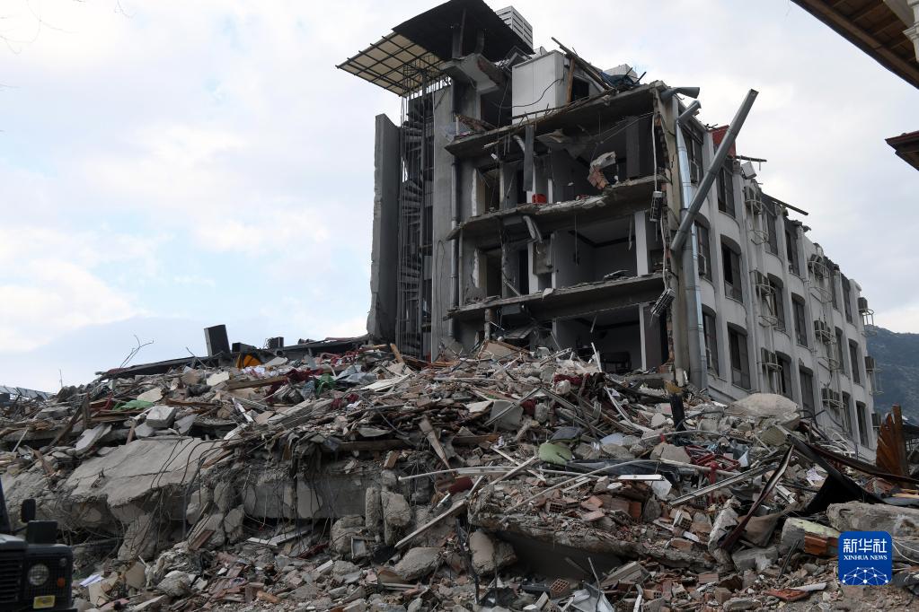 這是2月21日在土耳其哈塔伊省拍攝的在地震中受損的房屋。