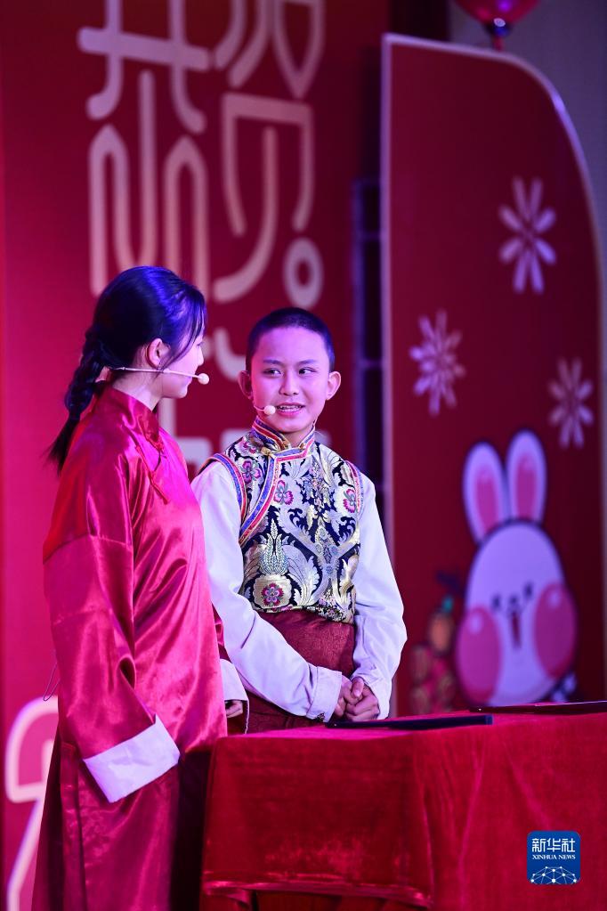 2月21日,在西安市浐灞第一中學(xué)舉行的藏歷新年團拜活動(dòng)上,漢藏學(xué)生一起表演相聲。