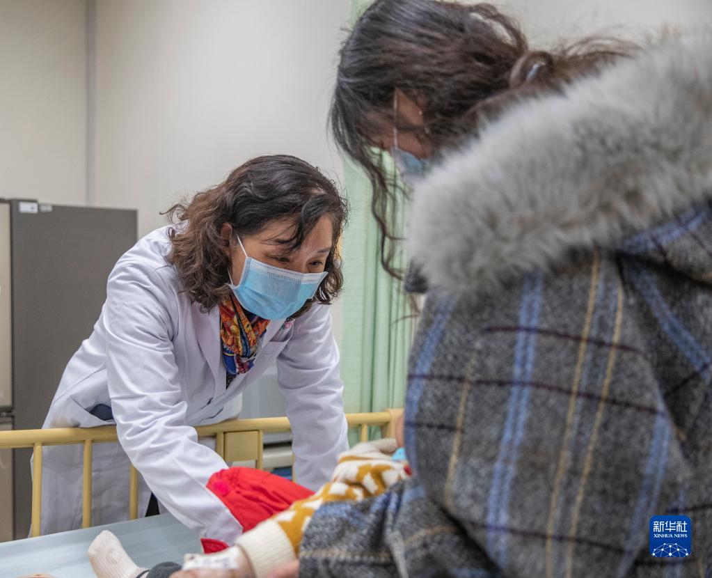 2月16日,在重慶醫科大學(xué)附屬兒童醫院兩江院區腎臟內科,李秋在查房時(shí)檢查患兒身體狀況。