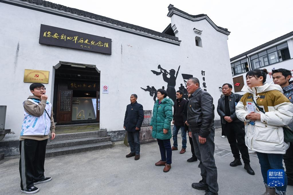 2月22日,在板橋鎮的臨安新四軍歷史紀念館,青年黨員志愿者給參加主題黨日活動(dòng)的流動(dòng)黨員講述革命歷史。