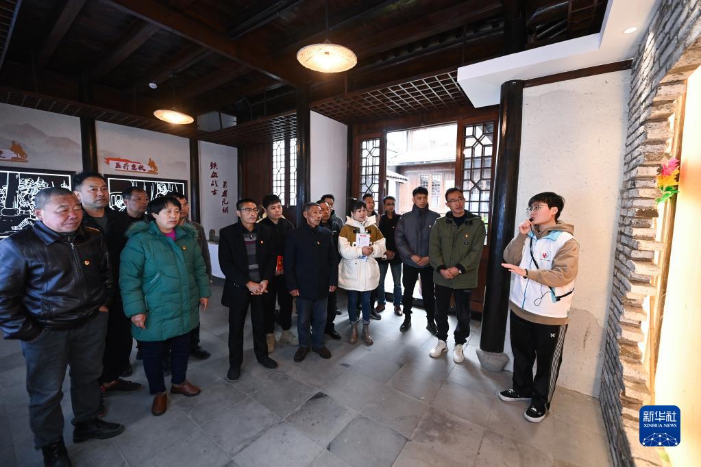 2月22日,在板橋鎮的臨安新四軍歷史紀念館,青年黨員志愿者給參加主題黨日活動(dòng)的流動(dòng)黨員講述革命歷史。