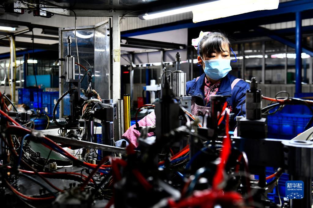 2月22日,在亞薩合萊國強(山東)五金科技有限公司,工作人員在加工五金配件。
