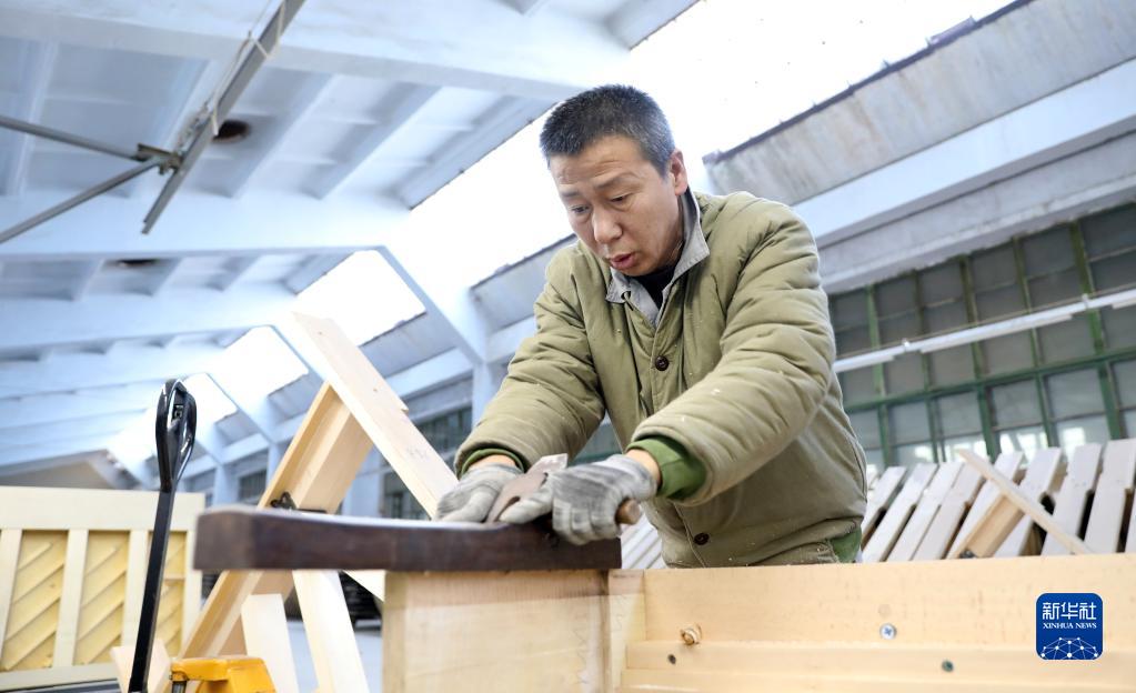 2月21日,工人在車(chē)間內加工鋼琴組件。