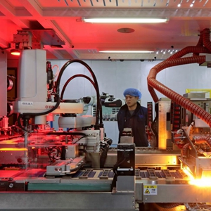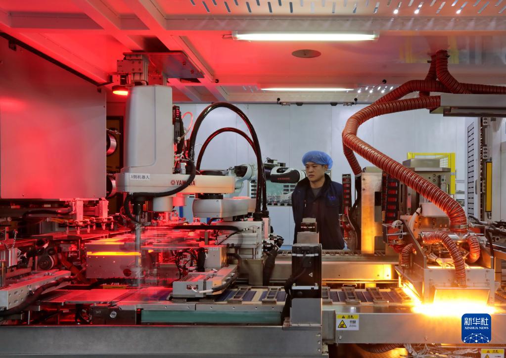 2月22日,保定國家高新技術(shù)產(chǎn)業(yè)開(kāi)發(fā)區一家太陽(yáng)能發(fā)電板制造企業(yè)工人在生產(chǎn)線(xiàn)上工作。