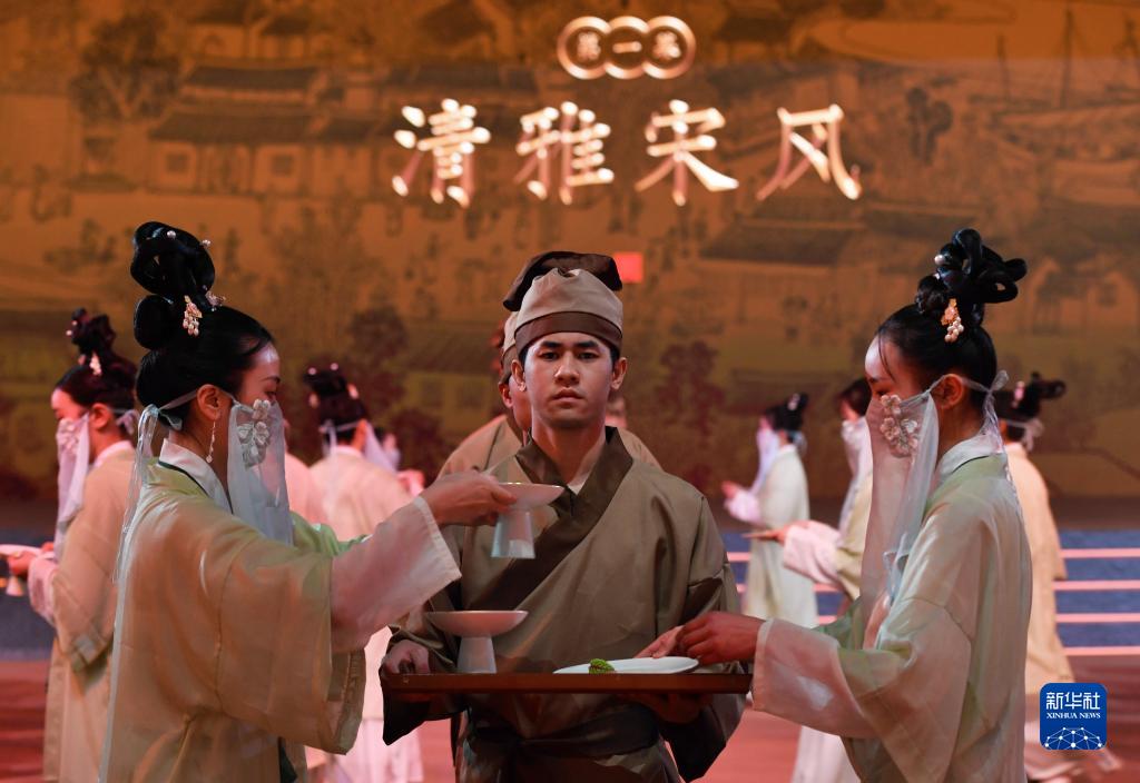 當日,福建泉州石獅市舉辦“閩菜地標美食城市”授牌暨“宋元海絲宴”推介儀式?!八卧=z宴”以南宋福建泉州石獅籍美食家林洪著(zhù)作《山家清供》為還原藍本,兼收閩南名菜,集山珍、海味于一席,將菜品、宴席與宋元器皿、場(chǎng)景、樂(lè )曲、詩(shī)詞等融合,展現宋元時(shí)期世界海洋商貿中心獨特的美食文化。新華社記者 魏培全 攝