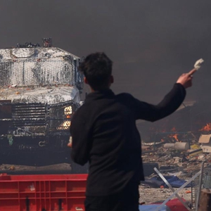 2月22日,在約旦河西岸城市納布盧斯,巴勒斯坦人向以色列軍車(chē)投擲石塊。